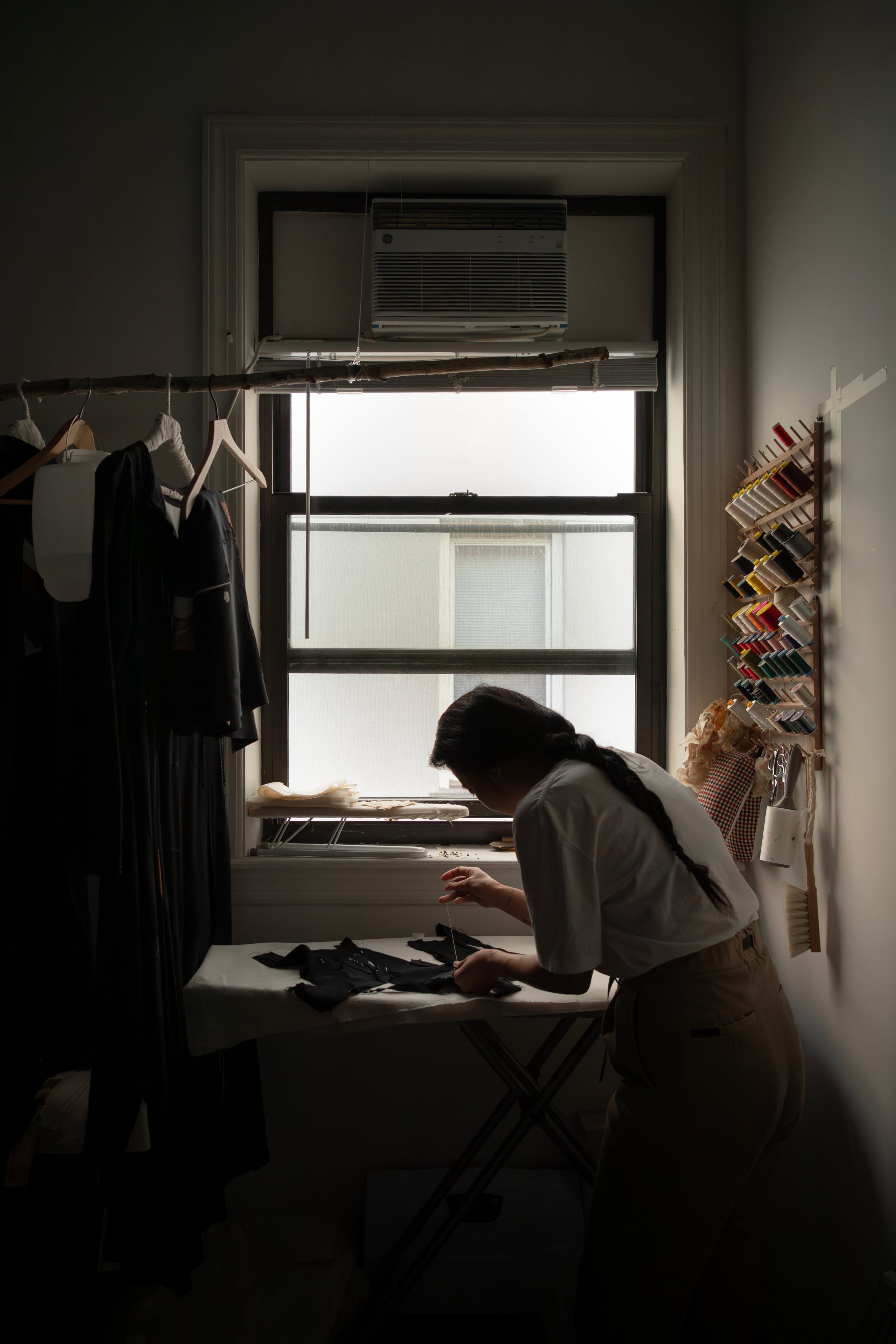 This is where each piece begins — among remnants of silk kimono, memory, and quiet work.